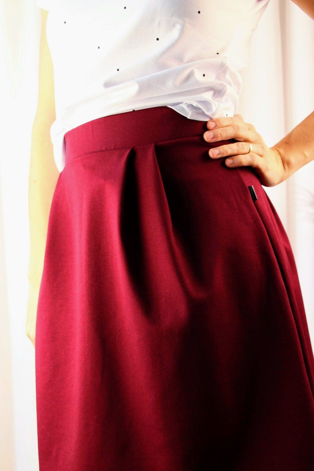 Veru chtěla sukni, ve které se nebudeš muset omezovat, a přesto bude elegantní a lichotící postavě. Všechny zkušenosti, které sama zažila, vložila do návrhu – od střihu, který se přizpůsobí pohybu, až po pohodlný pas, který nikde netlačí.
