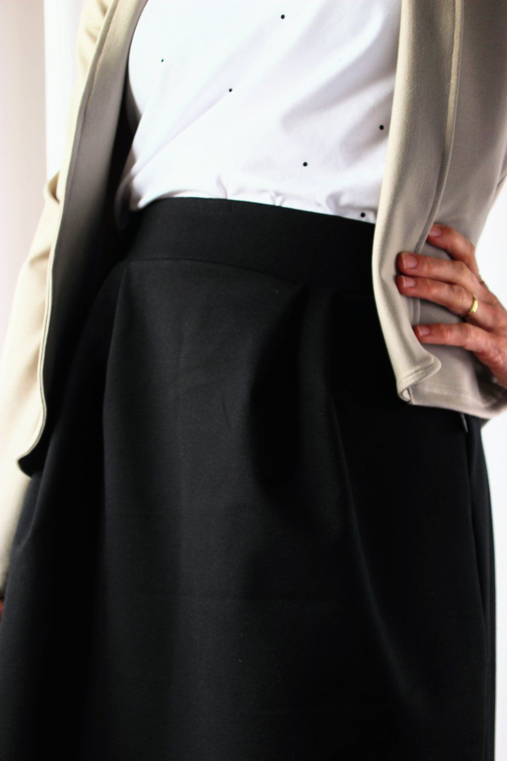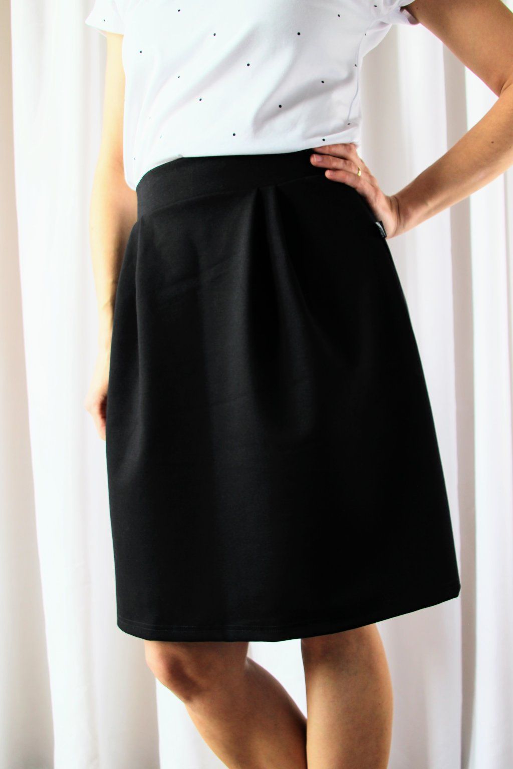 Veru chtěla sukni, ve které se nebudeš muset omezovat, a přesto bude elegantní a lichotící postavě. Všechny zkušenosti, které sama zažila, vložila do návrhu – od střihu, který se přizpůsobí pohybu, až po pohodlný pas, který nikde netlačí.