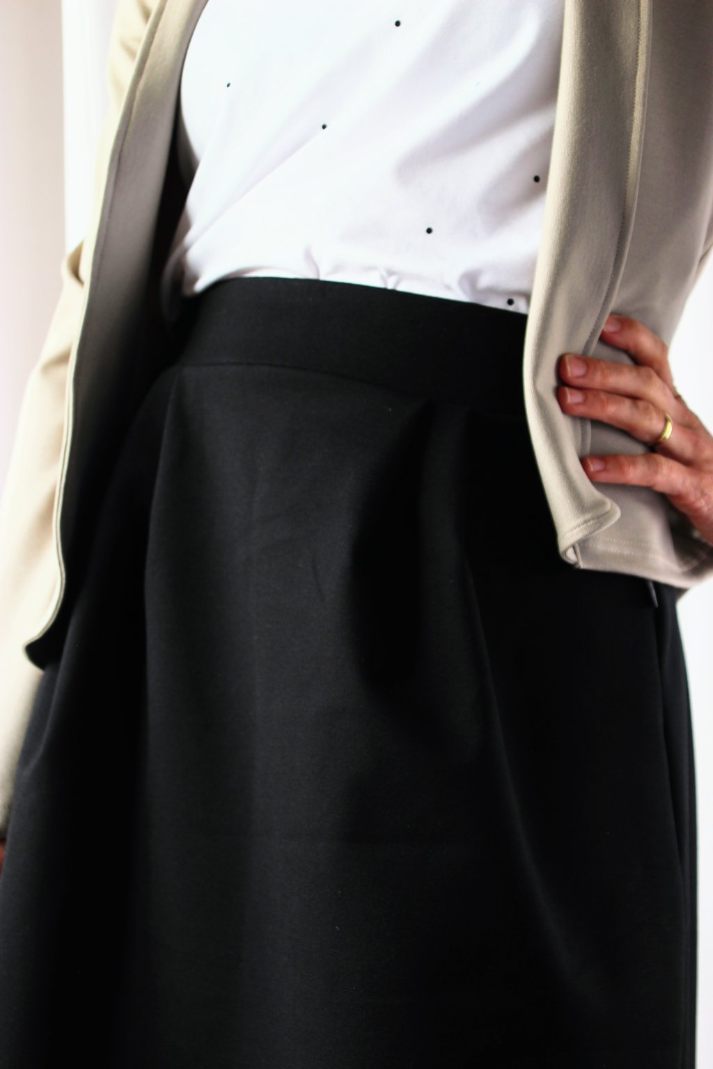 Oblečení do práce by mělo být pohodlné. Materiál, který pro sukni Seraphia Veru vybrala, je pružný a měkký a krásně se přizpůsobí Tvé postavě, a zároveň ji pěkně vytvaruje.