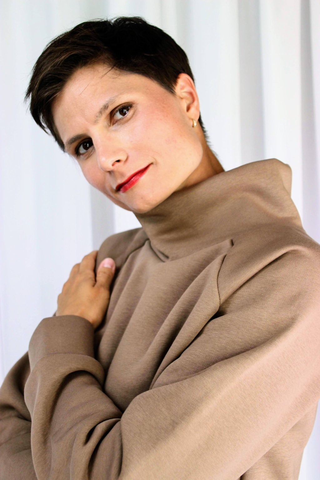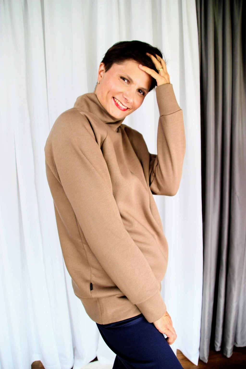 Lehký oversize střih, teplákovina, rolák – to je kombinace, díky které se Veru cítí v bezpečí, teple a stále šik. A věřte, že pokud v ní není Veru zima, je to pravý signál, že tahle mikina je prostě top!
