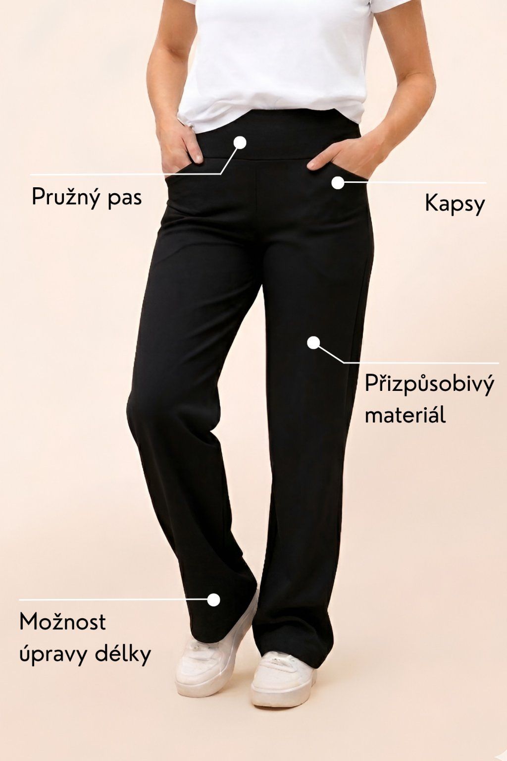 Kancelářky mají široký pohodlný pas, který netlačí a dává bříšku prostor. Díky tomu se v nich nejen cítíte dobře, ale je to i zdravější než klasické těsné kalhoty, které stahují a omezují.