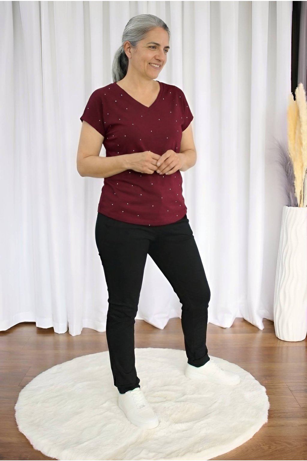 Design našich dámských kalhot Penny kombinuje pohodlí s elegancí, což umožní nosit tyto kalhoty nejen doma, ale i při setkáních s přáteli nebo při běžných denních aktivitách. Víceúčelovost našich kalhot Vám poskytne svobodu volby, zda je budete kombinovat s tričkem pro volný den nebo s elegantním topem pro večerní vycházku.