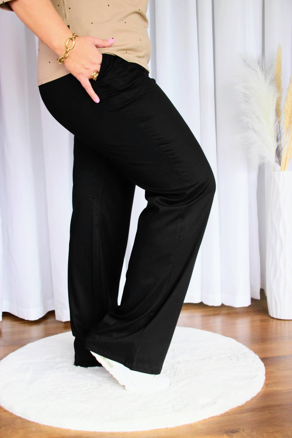 Pohodlným kalhotám zasvětila Veronika velkou část svého života. A jejím dalším počinem jsou kalhoty Comfy. Vzdušný lehký viskózový materiál s příměsí elastanu se jí na to zdál jako stvořený.