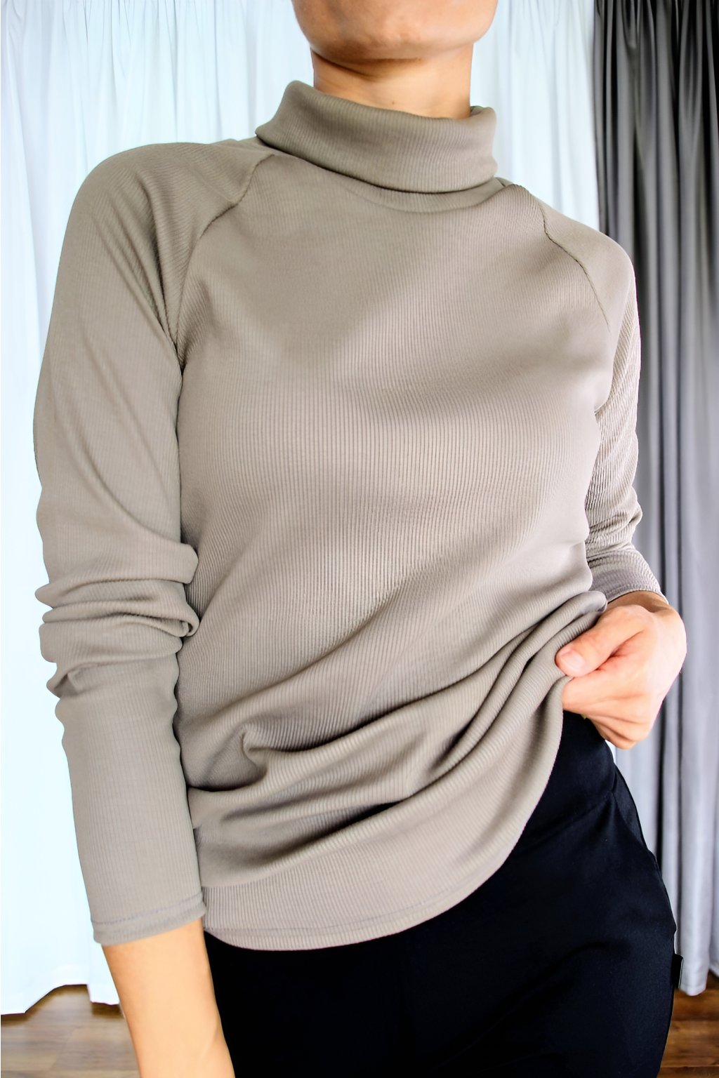 Rolák Aurora jsem navrhla tak, aby se stal spolehlivým základem Tvého šatníku. Lehký, ale hřejivý, ve strukturovaném materiálu a s prodlouženou délkou – místo halenky klidně i do práce.