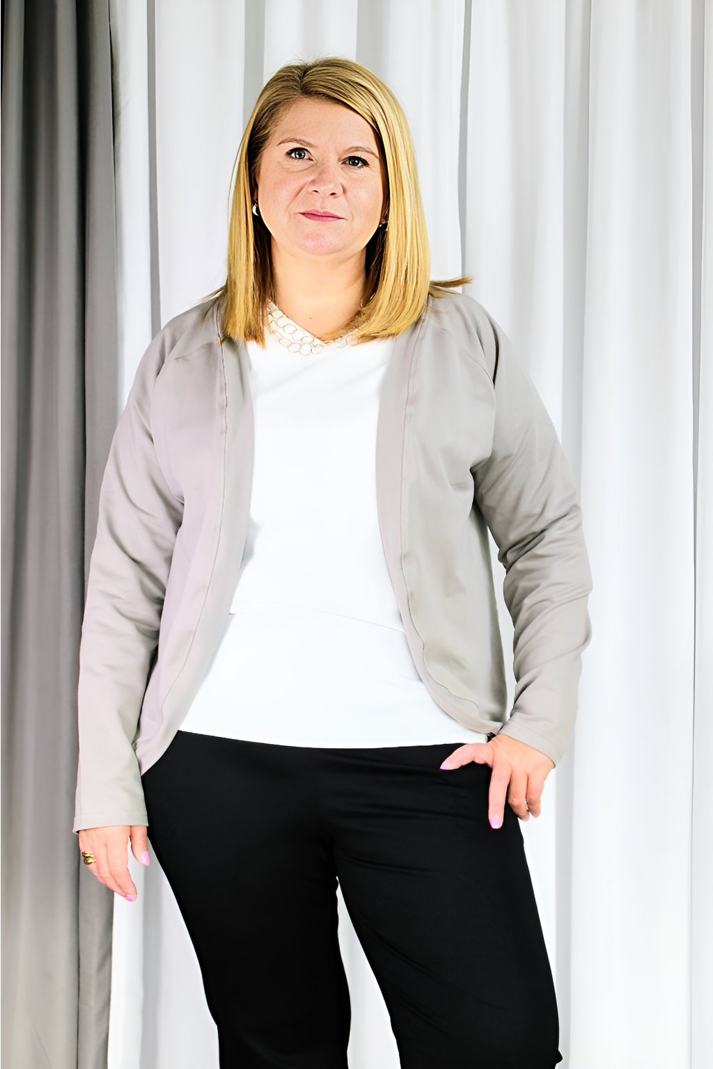 ✨ Nadčasový střih – působí profesionálně, ale nosí se, jako bys byla doma