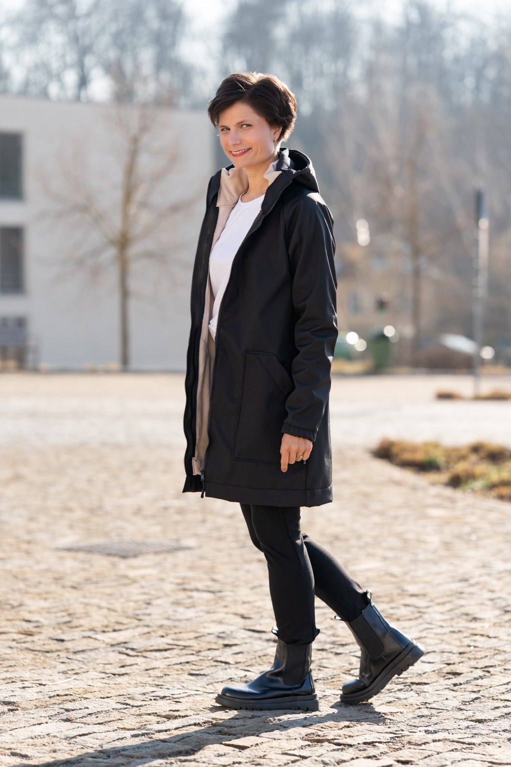 Výsledkem je kabát, který s Vámi roste, mění se a přizpůsobuje Vašemu životu. Ať už čekáte miminko, nosíte ho na hrudi, na zádech nebo jdete sama – bude Vás doprovázet ve všech obdobích ženy.