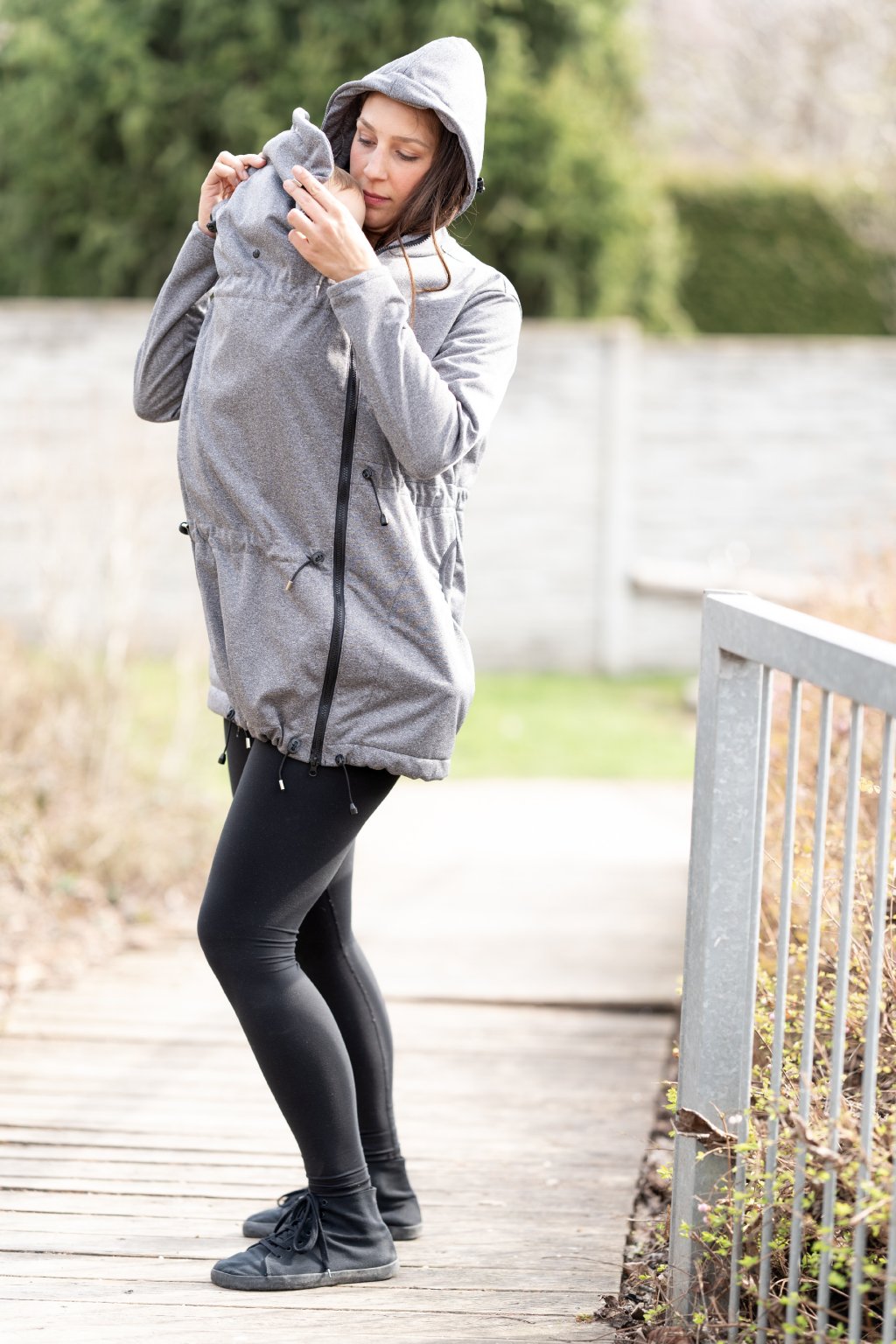 Základní verze kabátu je určena pro běžné nošení, při povolení stahování v pase se do ní ale vejde i těhotenské bříško. Následně je kabát možné použít na nošení miminka. Pozor - chcete-li své miminko nosit i na zádech, je nutné koupit rovnou verzi Zadní nošení.