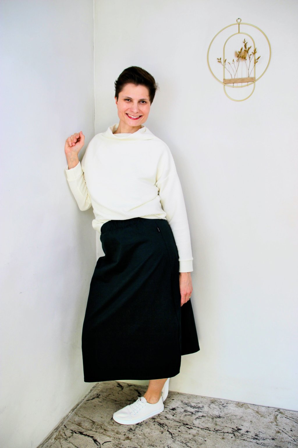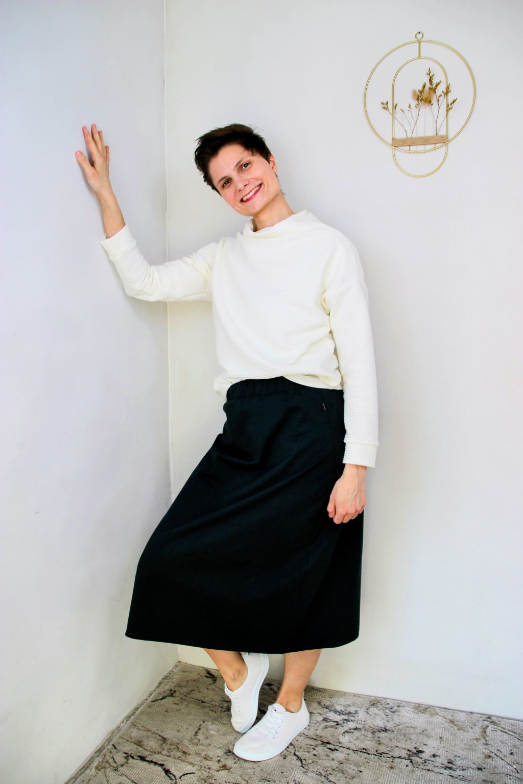 Záleží jen na tom, s čím ji zkombinuješ – ať si vezmeš basic tričko nebo mikinu, vždycky to bude fungovat. A ty se budeš cítit žensky, volně a sama sebou.