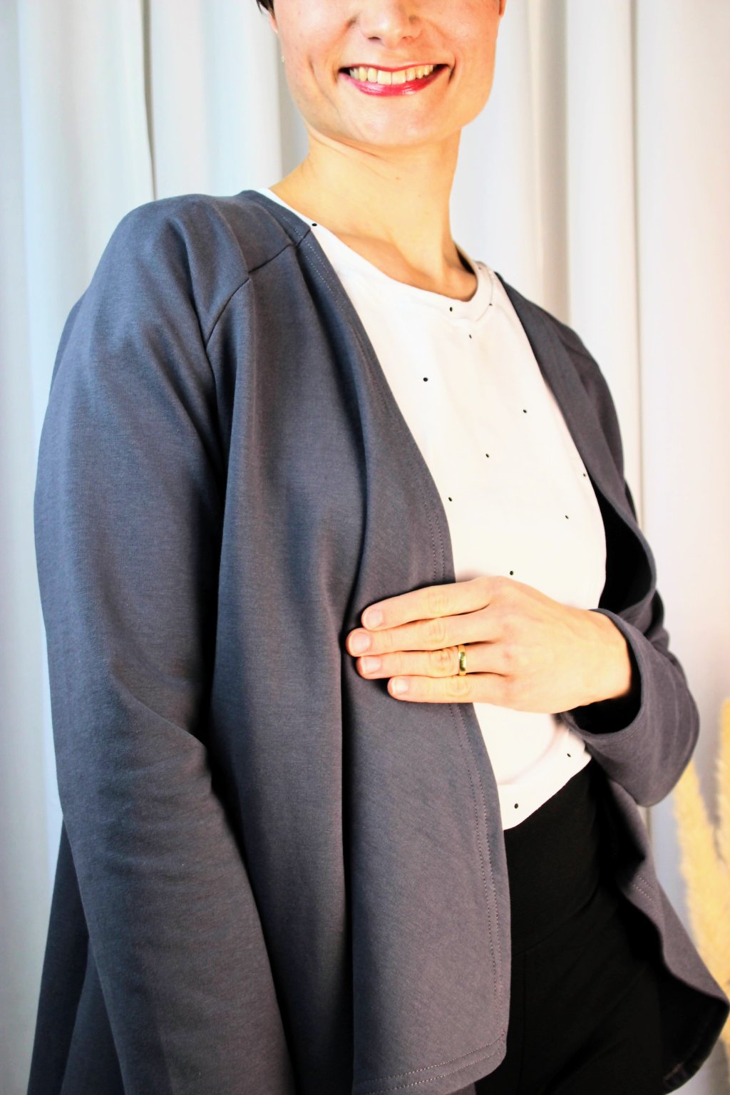 „Sehnat jednoduchý, ,,vlastně úplně obyčejný" kardigan, který by byl ale neobyčejně zamilovatelný, se mi nedařilo. Aby byl snadno kombinovatelný, dlouho vydržel a já nemusela přemýšlet, že si ho ,,musím šetřit", a aby se stal mým každodenním společníkem. Tak jsem si ho ušila."
