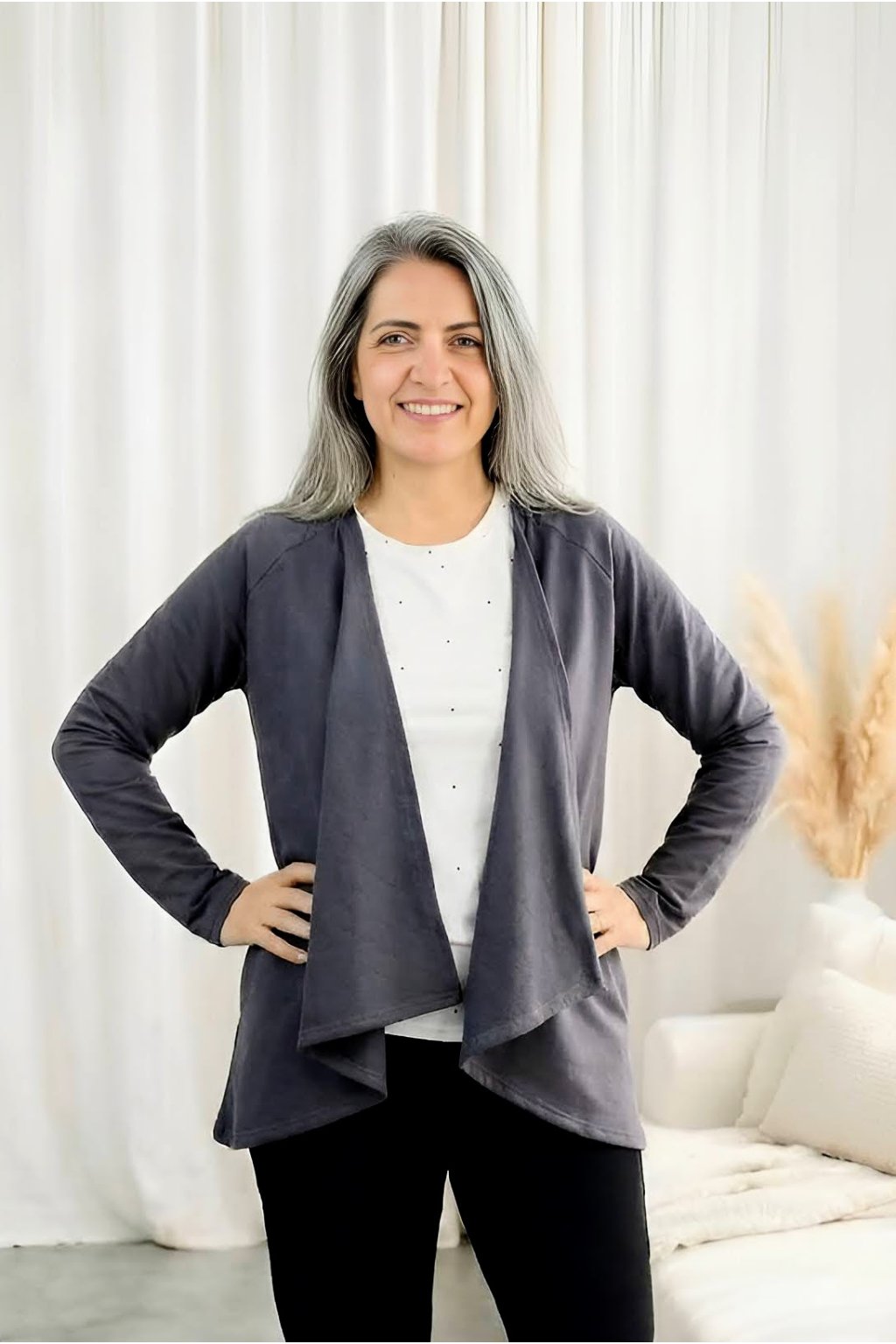 Zimní kardigan Tula s chloupkem uvnitř je hřejivý společník, který se stane tvým oblíbeným kouskem pro chladné dny. Jemný, měkký a hebký – ideální, když se chceš zachumlat a fakt nemáš čas dlouho přemýšlet, co na sebe.