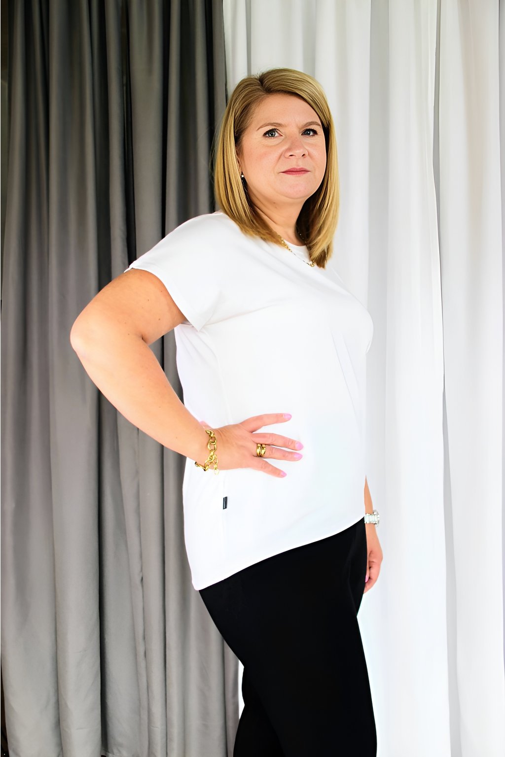 Tričko má čistý, minimalistický vzhled a střih, který lichotí postavě. Hodí se prostě ke všemu – ať už si ho vezmete do práce, na procházku, nebo k domácímu lenošení.